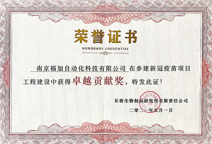 2021年福加參與長(zhǎng)春生物所新冠疫苗工程建設(shè),并獲得卓越貢獻(xiàn)獎(jiǎng)的榮譽(yù),用實(shí)際行動(dòng)踐行“凝聚力量助抗疫”的使命。