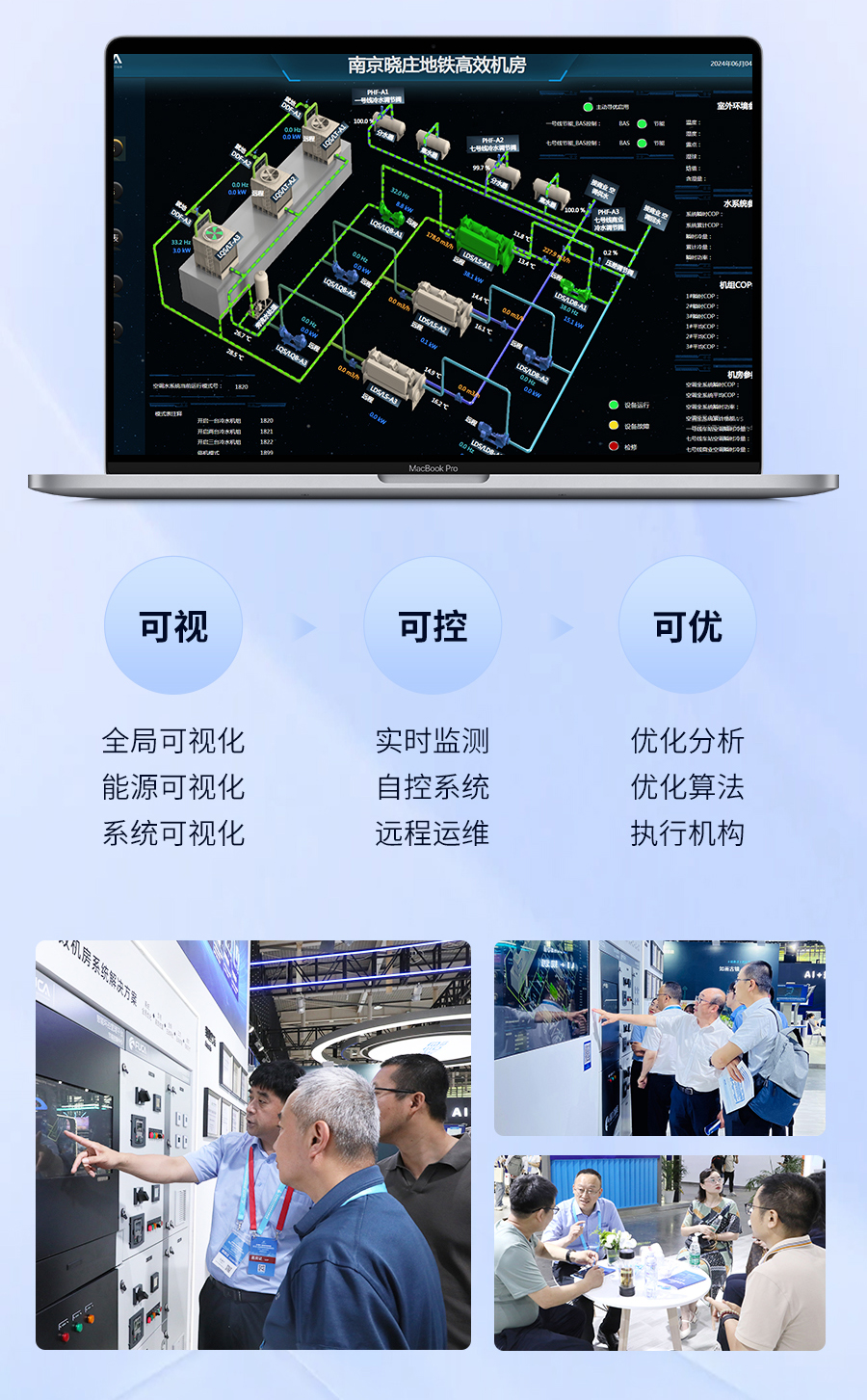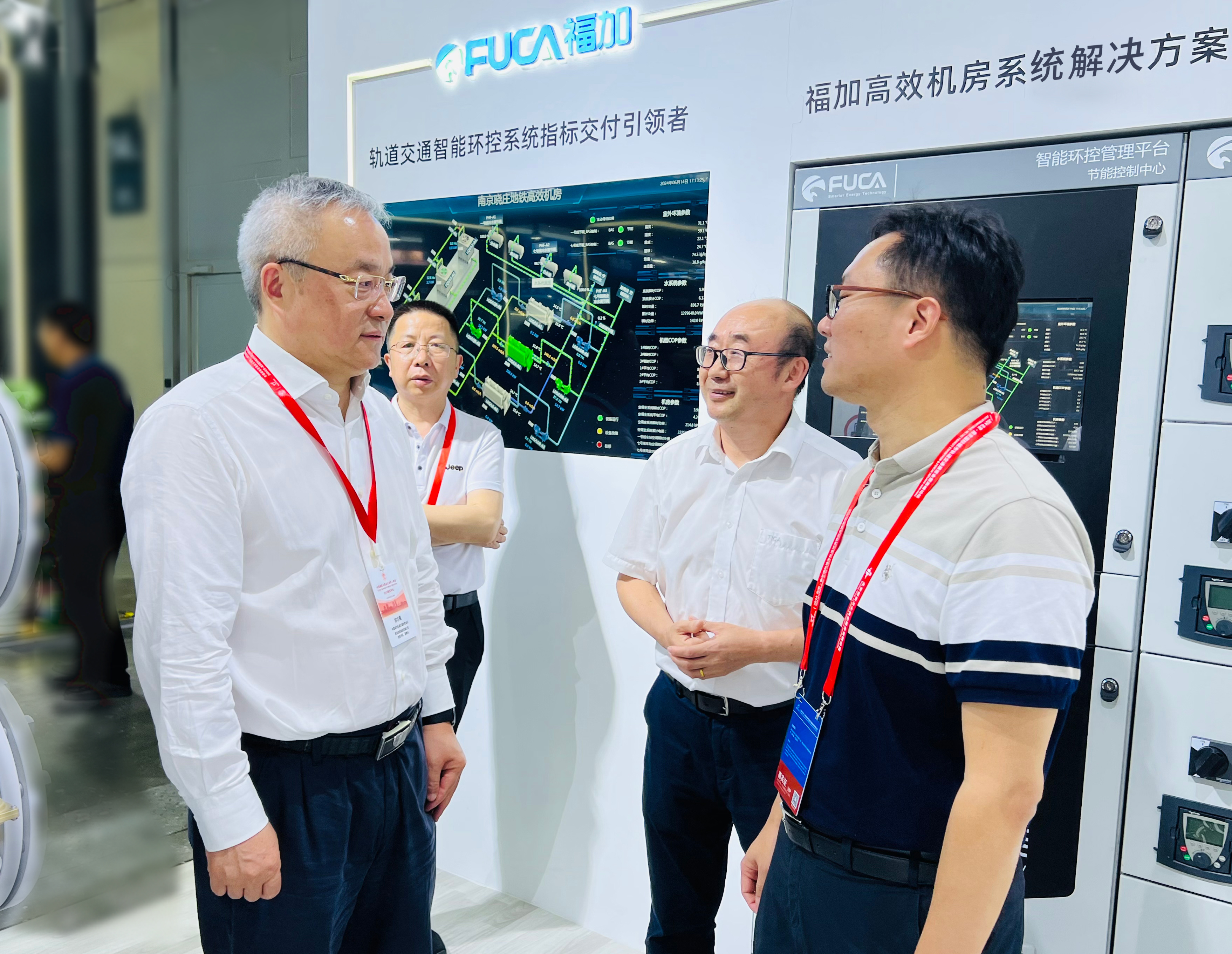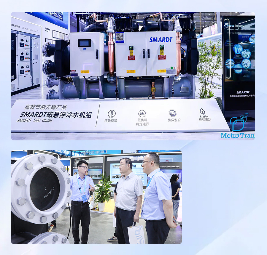 南京地鐵集團(tuán)佘董事長(zhǎng)蒞臨天加展臺(tái),佘董對(duì)南京地鐵高效機(jī)房試點(diǎn)站-曉莊站項(xiàng)目予以了關(guān)注和認(rèn)可,該項(xiàng)目是由天加和福加聯(lián)合實(shí)施,于2023年交付,其制冷機(jī)房系統(tǒng)年均運(yùn)行能效比達(dá)6.0以上,空調(diào)全系統(tǒng)年均運(yùn)行能效比達(dá)4.2以上。