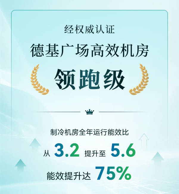 德基廣場1期高效機房節(jié)能改造項目,經(jīng)權(quán)威檢測制冷機房全年運行能效比達5.6,機房系統(tǒng)被合肥通用機電產(chǎn)品檢測院認證為“領(lǐng)跑級”。
