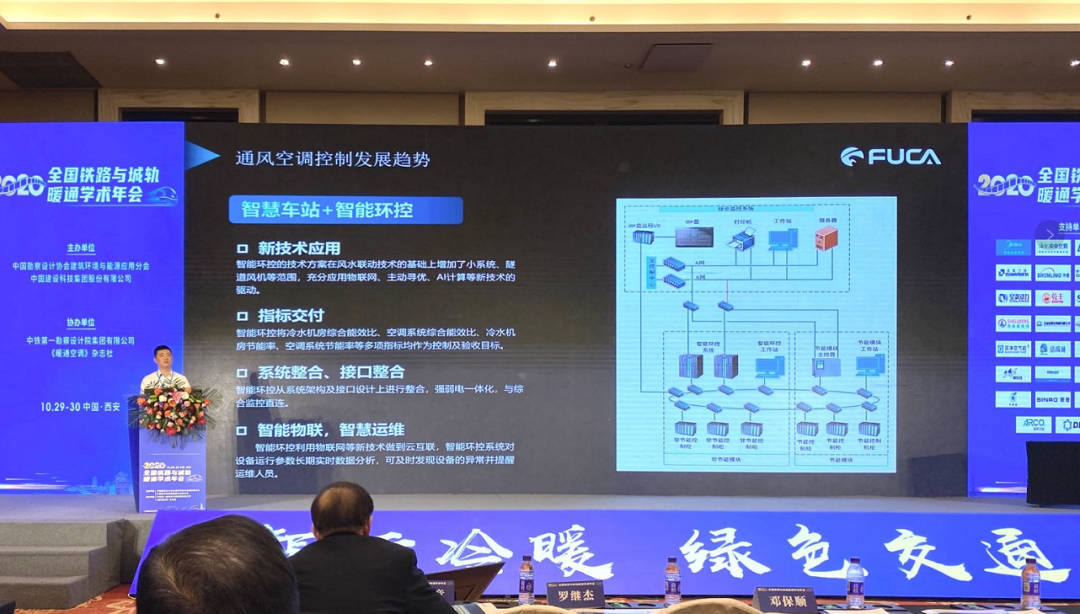 福加技術支持部經理林浩以高效機房建設為主題在會上進行了分享交流,演講報告分析了軌交通風空調控制系統(tǒng)發(fā)展的趨勢和高效機房建設實施的要點及評價標準,并結合實際應用案例——廣州地鐵白江站、新塘站高效機房,從規(guī)劃設計到評價體系兩個維度全面分析了高效機房實施的過程。